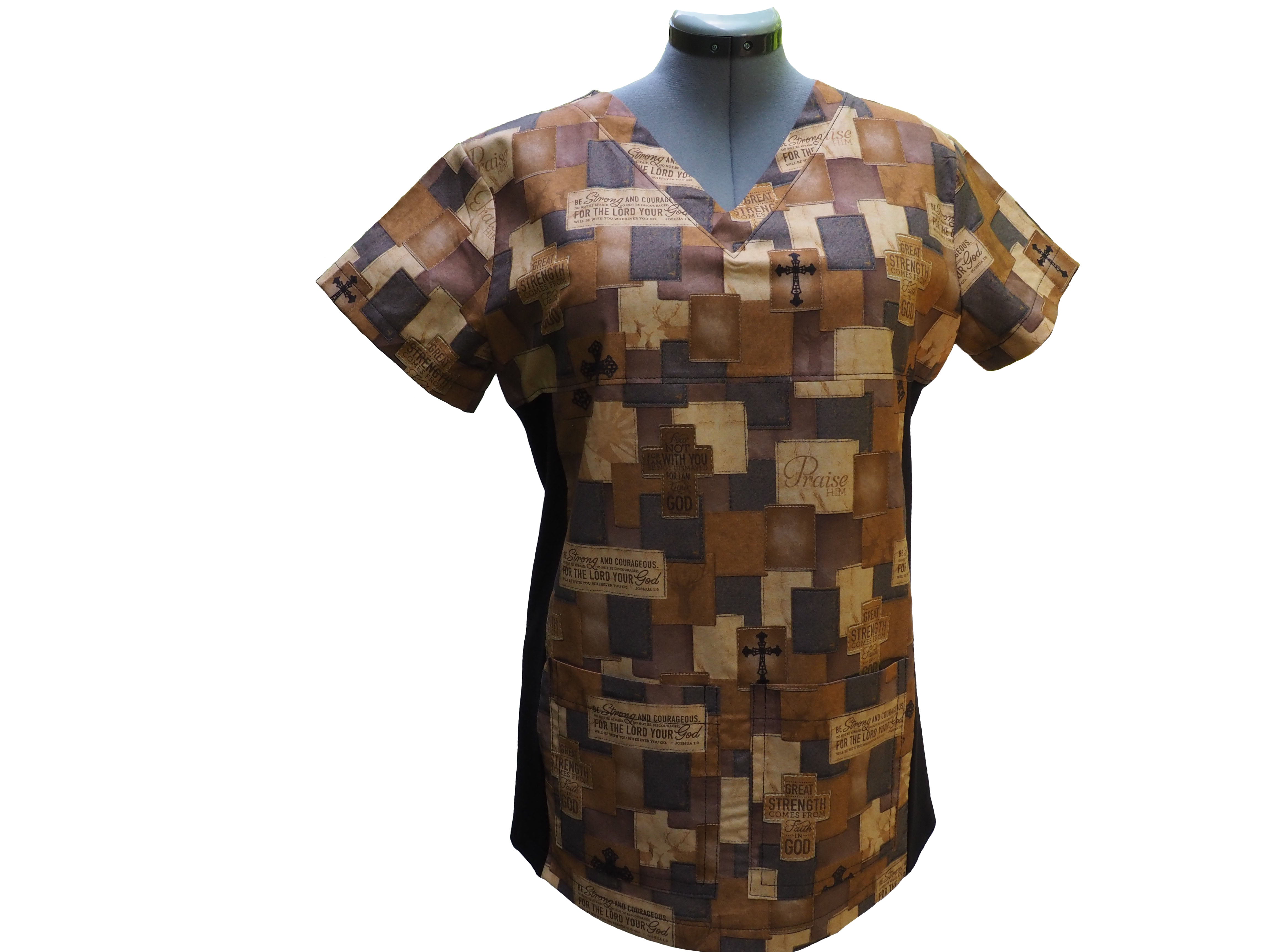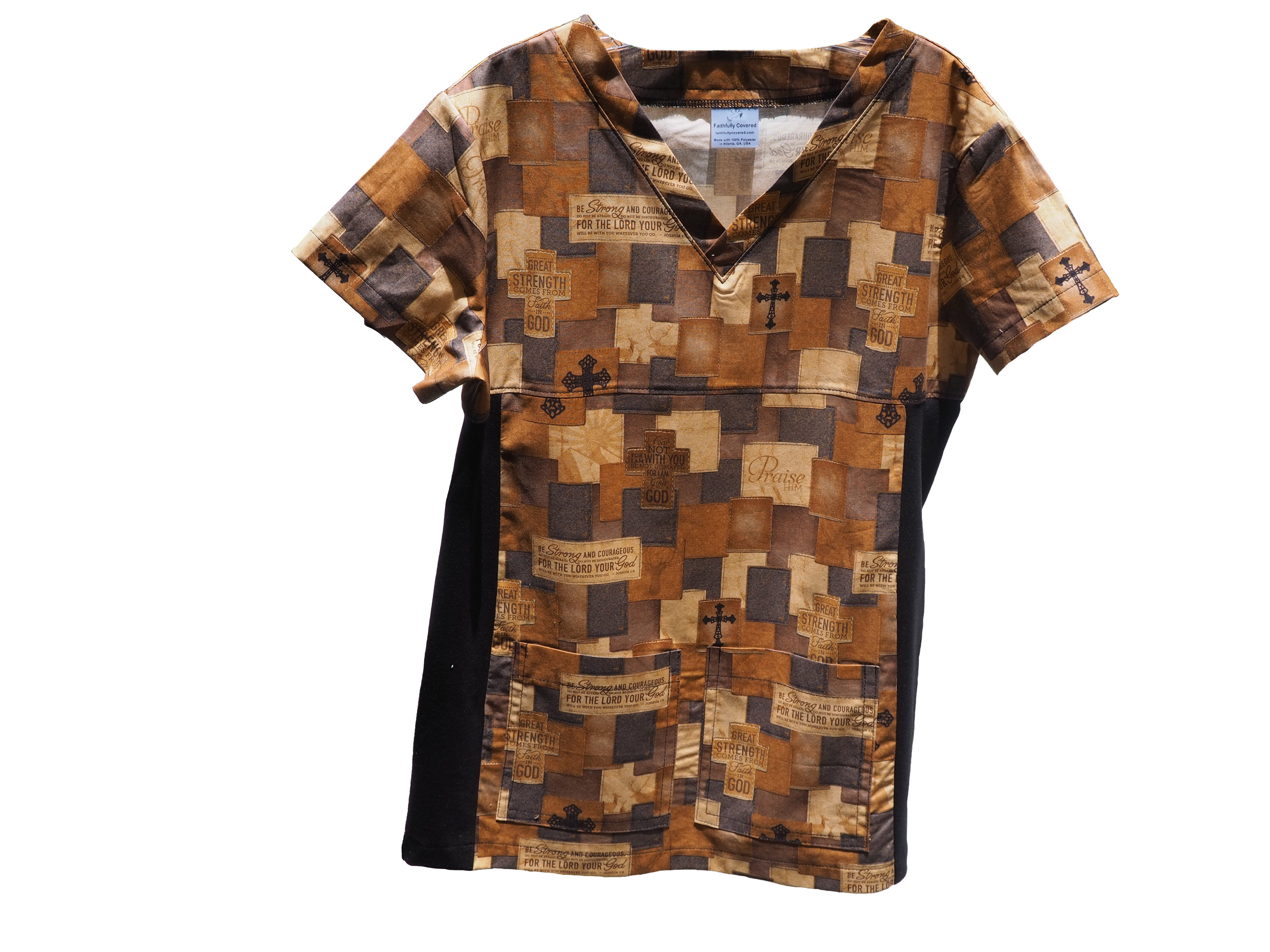 Christian Inspirational Scrub Top with 3 Pockets - Be Strong