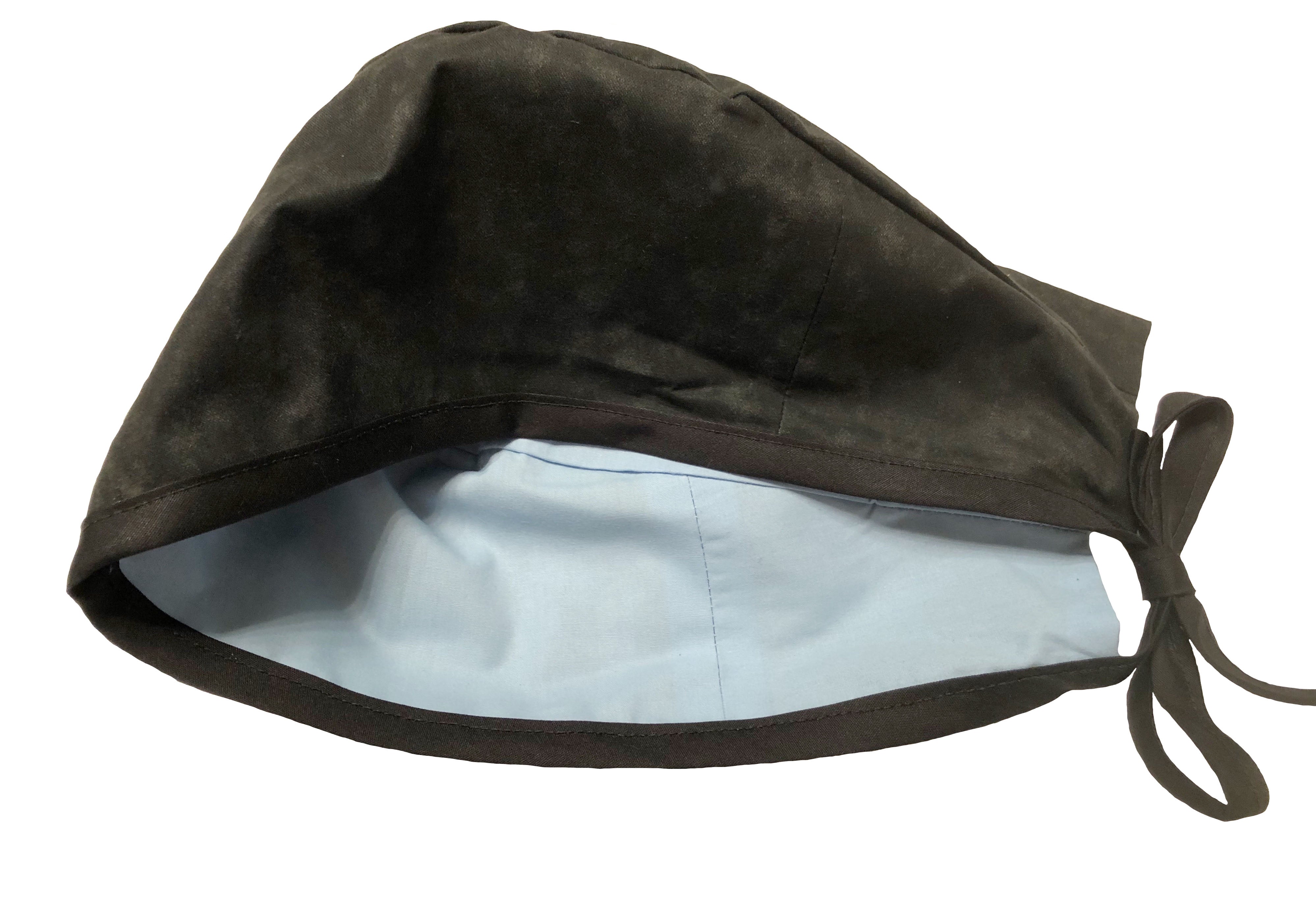 Reversible scrub cap with black on one side and light blue color on the other. One size fits most. Has a tie at the end for a more secure fit. Matching face mask sold separately.