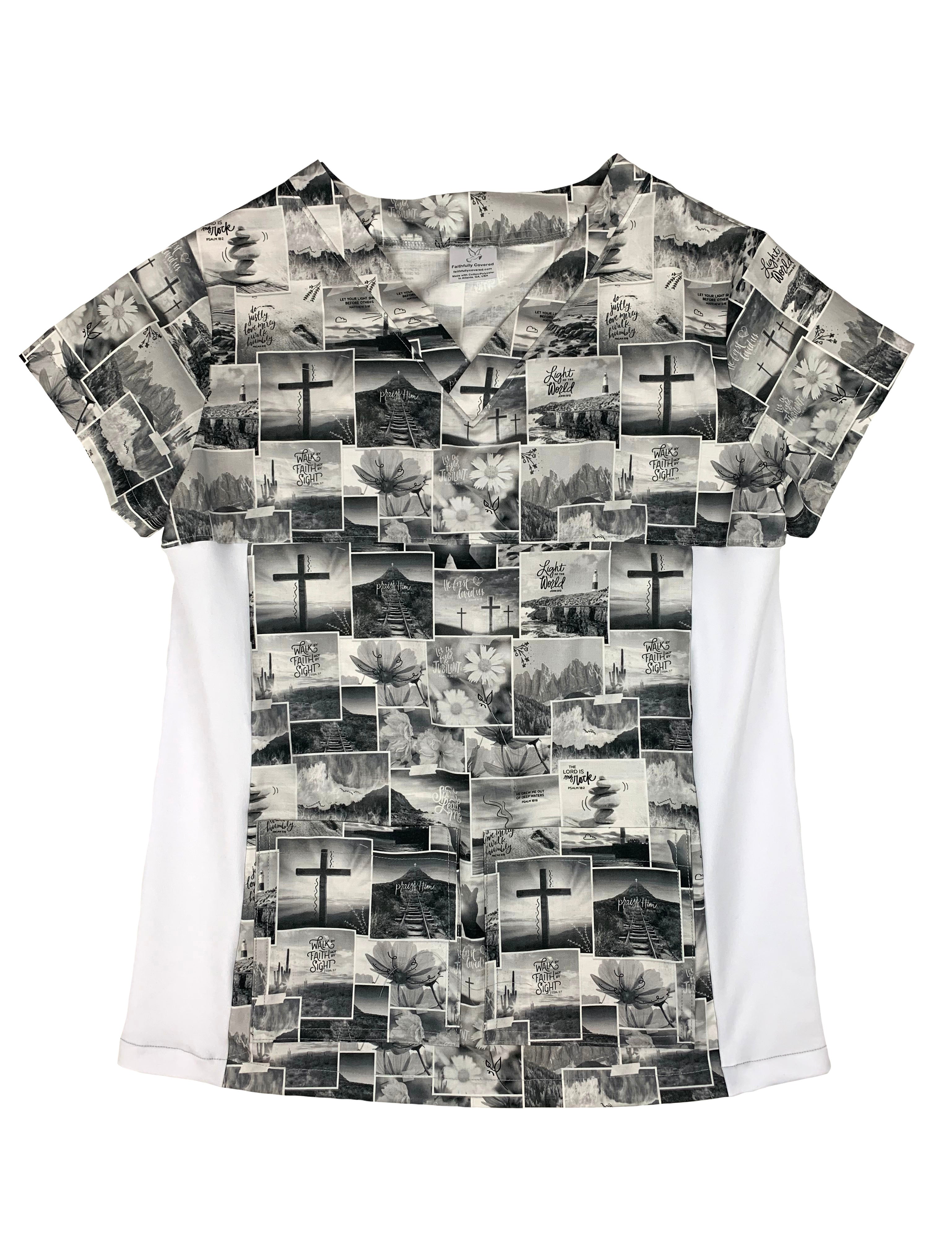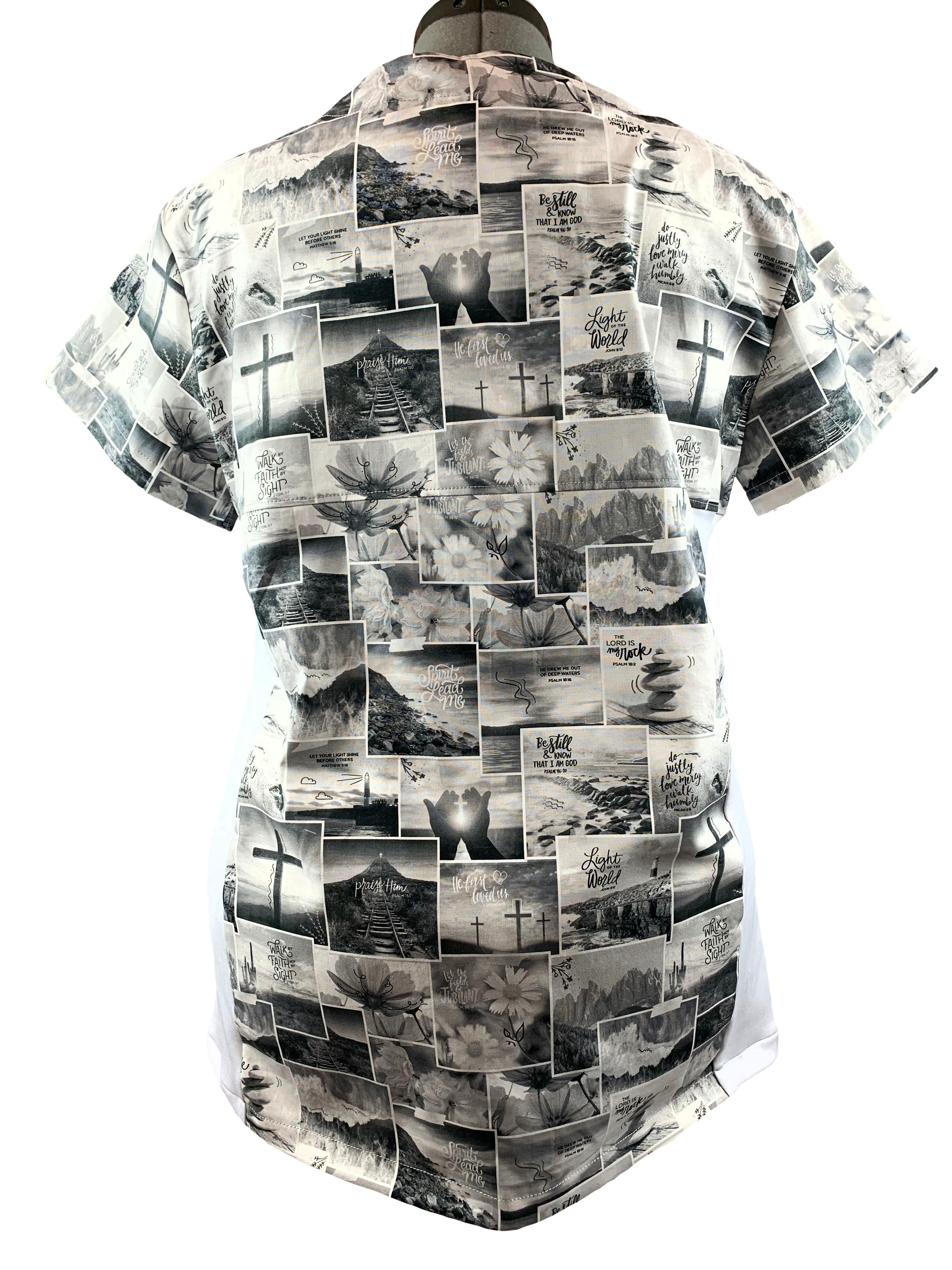 Christian Scrub Top with Inspirational Words - Scripture Panels