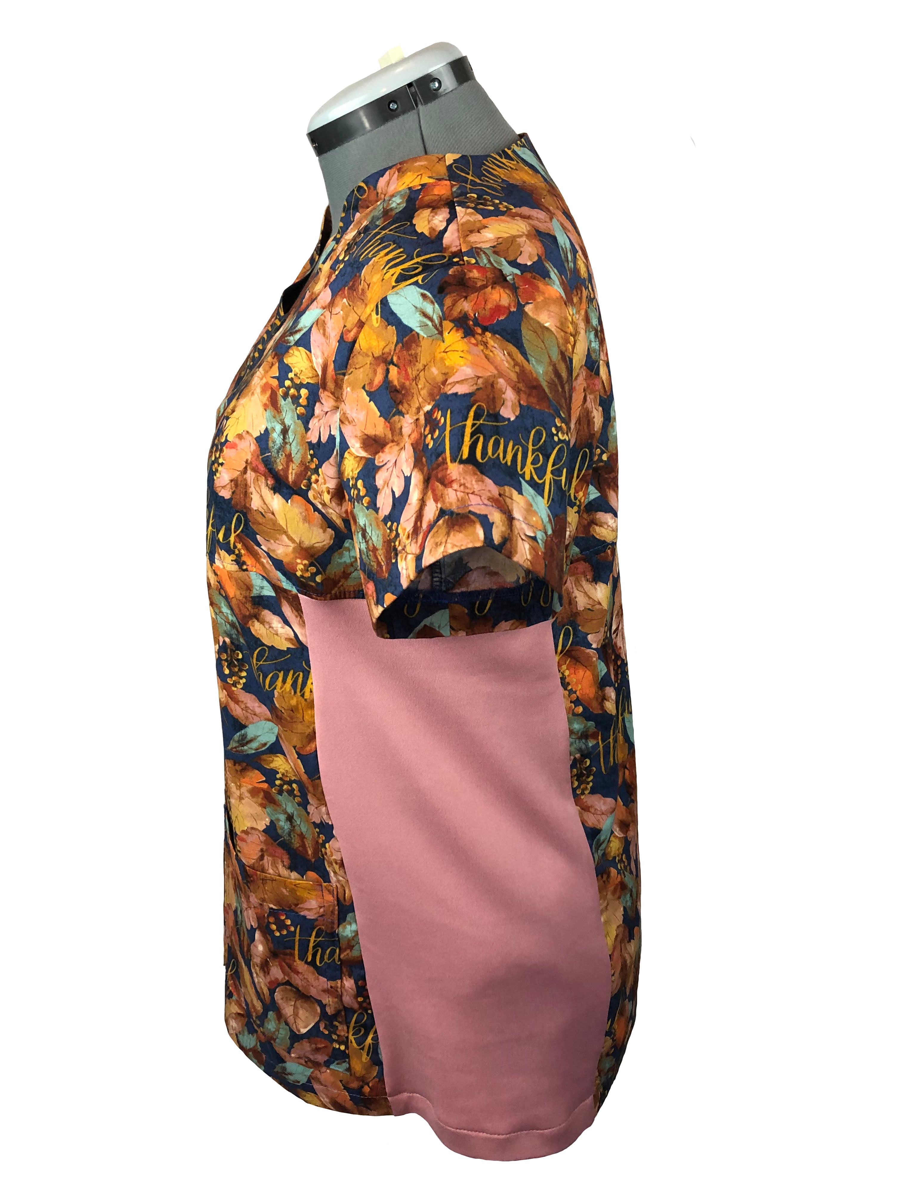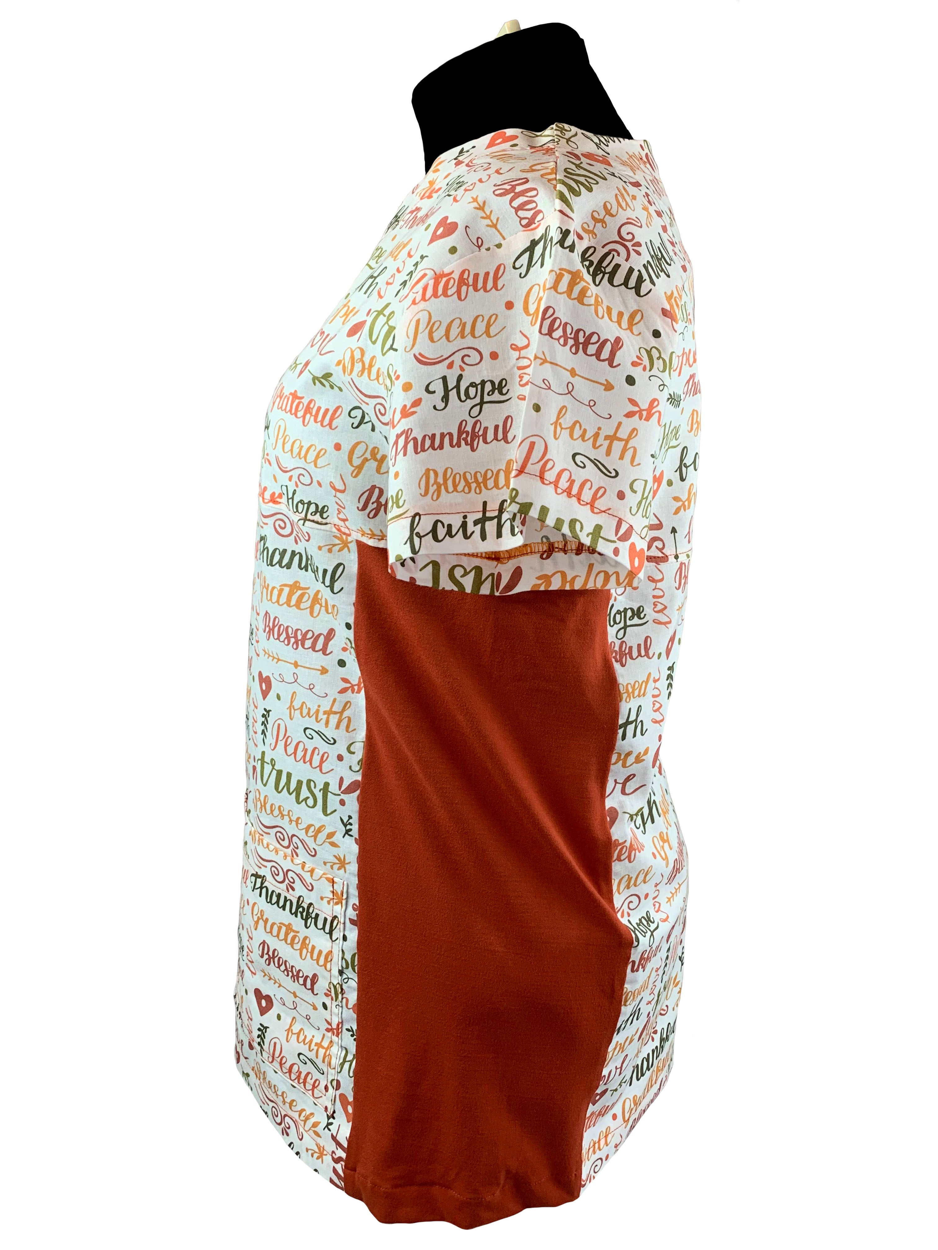 Christian Scrub Top with Inspirational Words -Thankful and Blessed