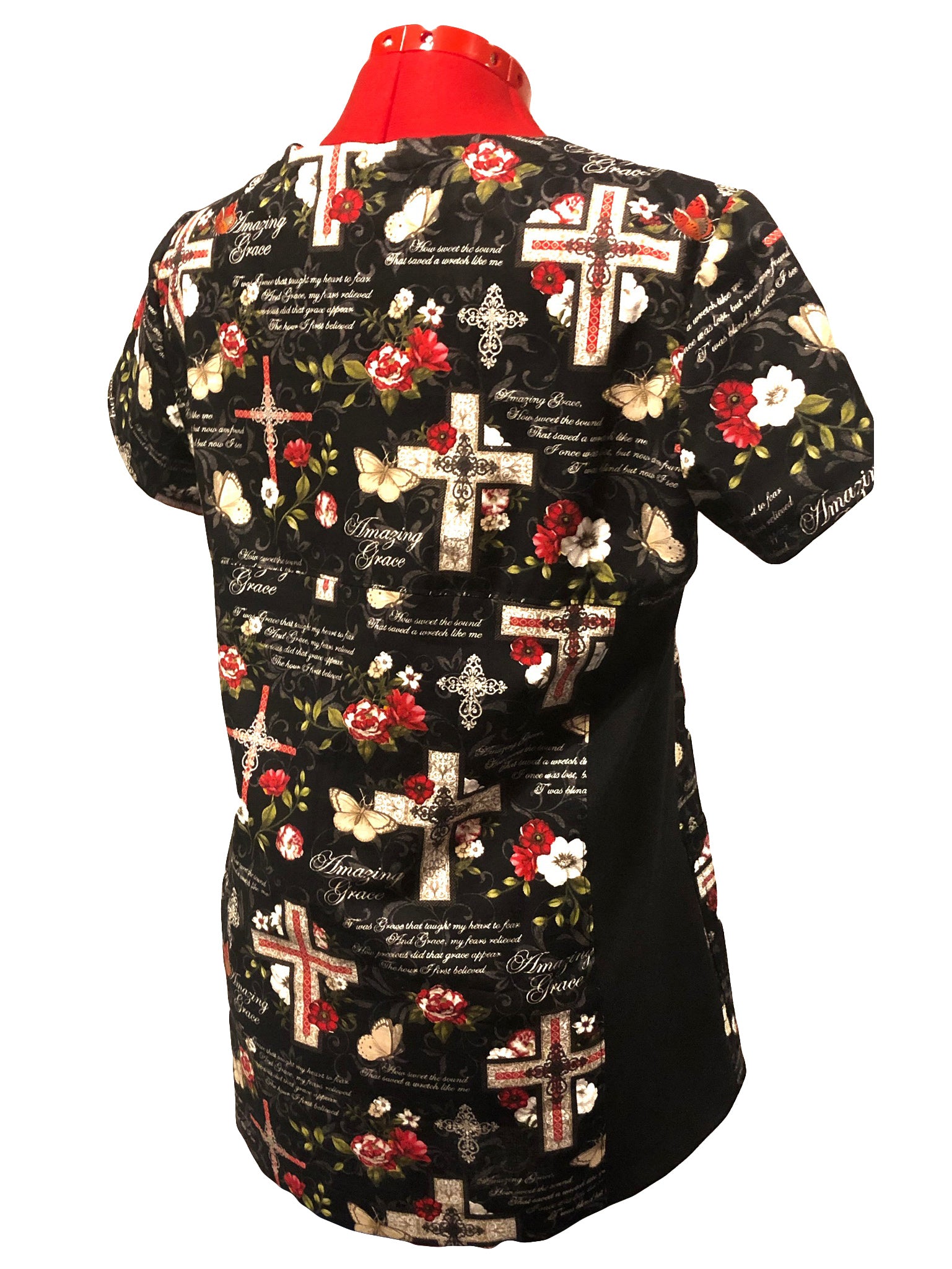 Christian Scrub Top with Inspirational Words—Amazing Grace