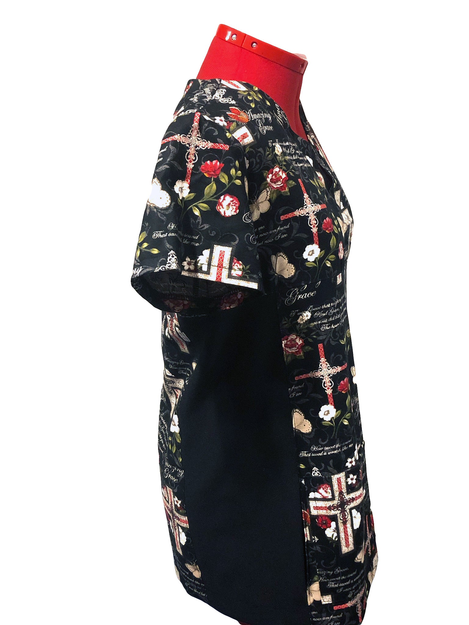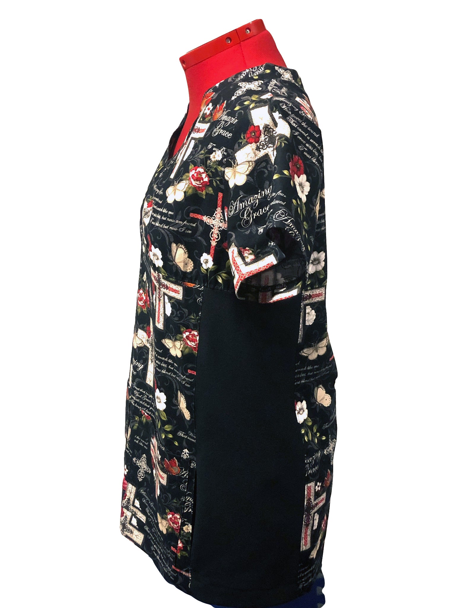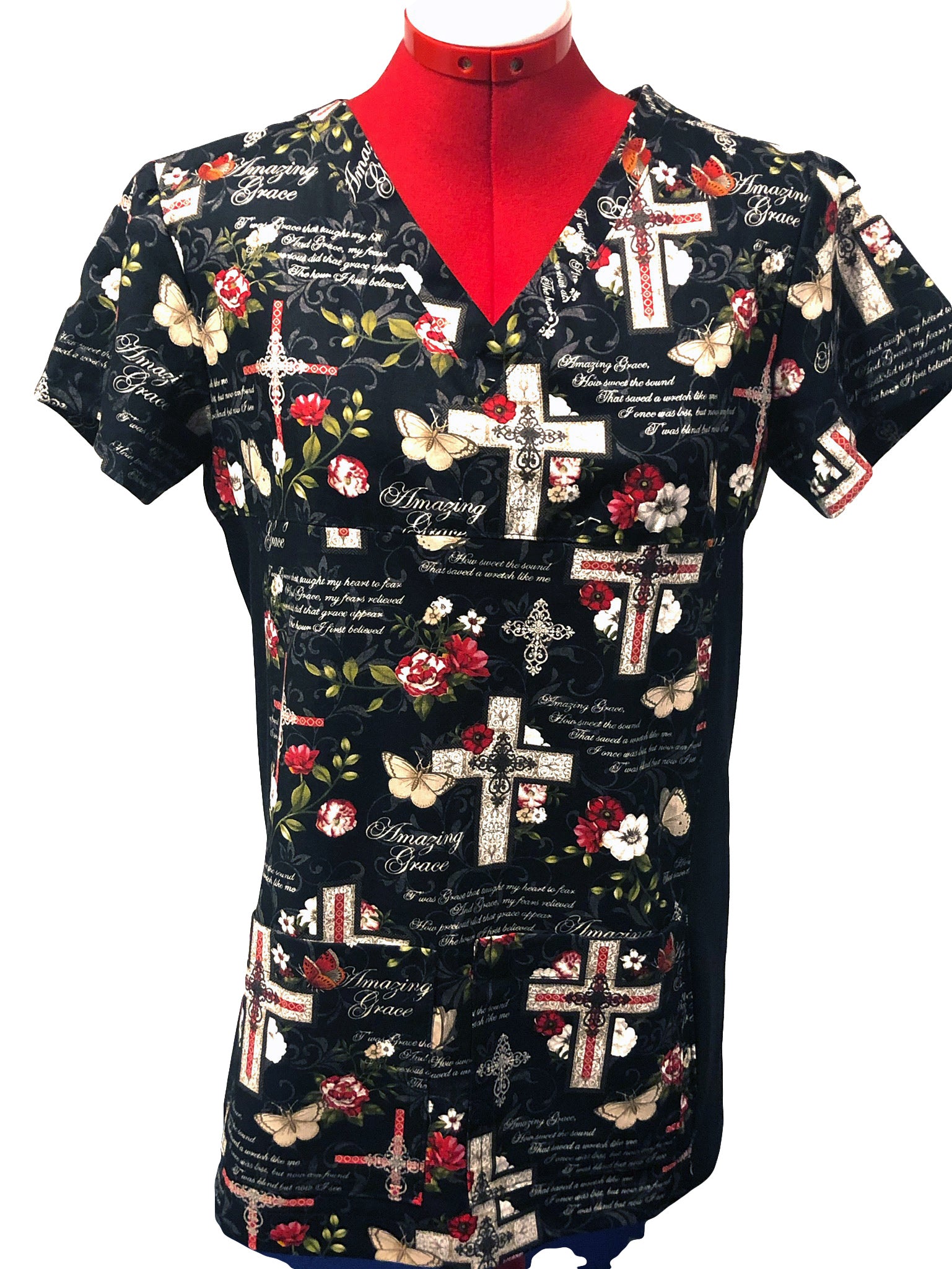 Christian Inspirational Scrub Top with 3-Pocket—Amazing Grace