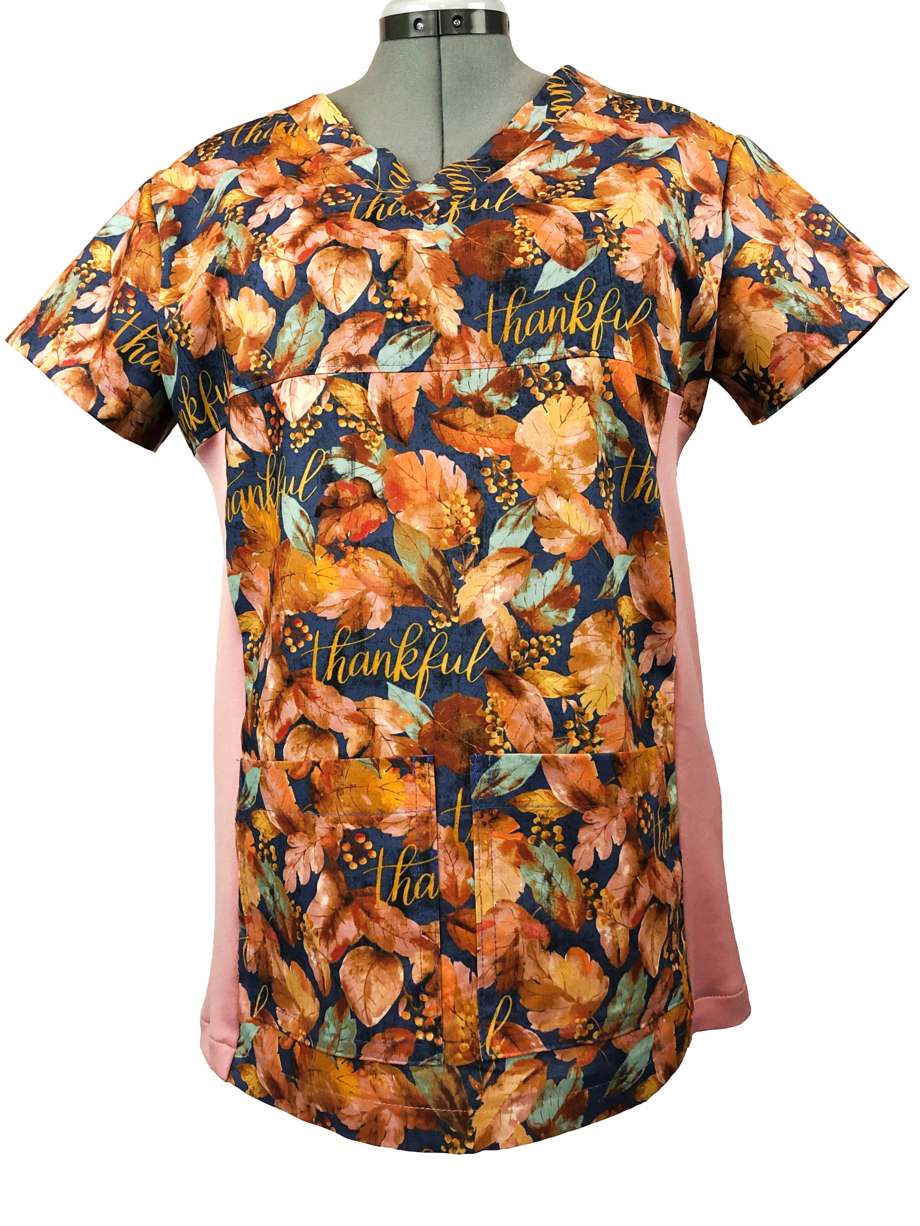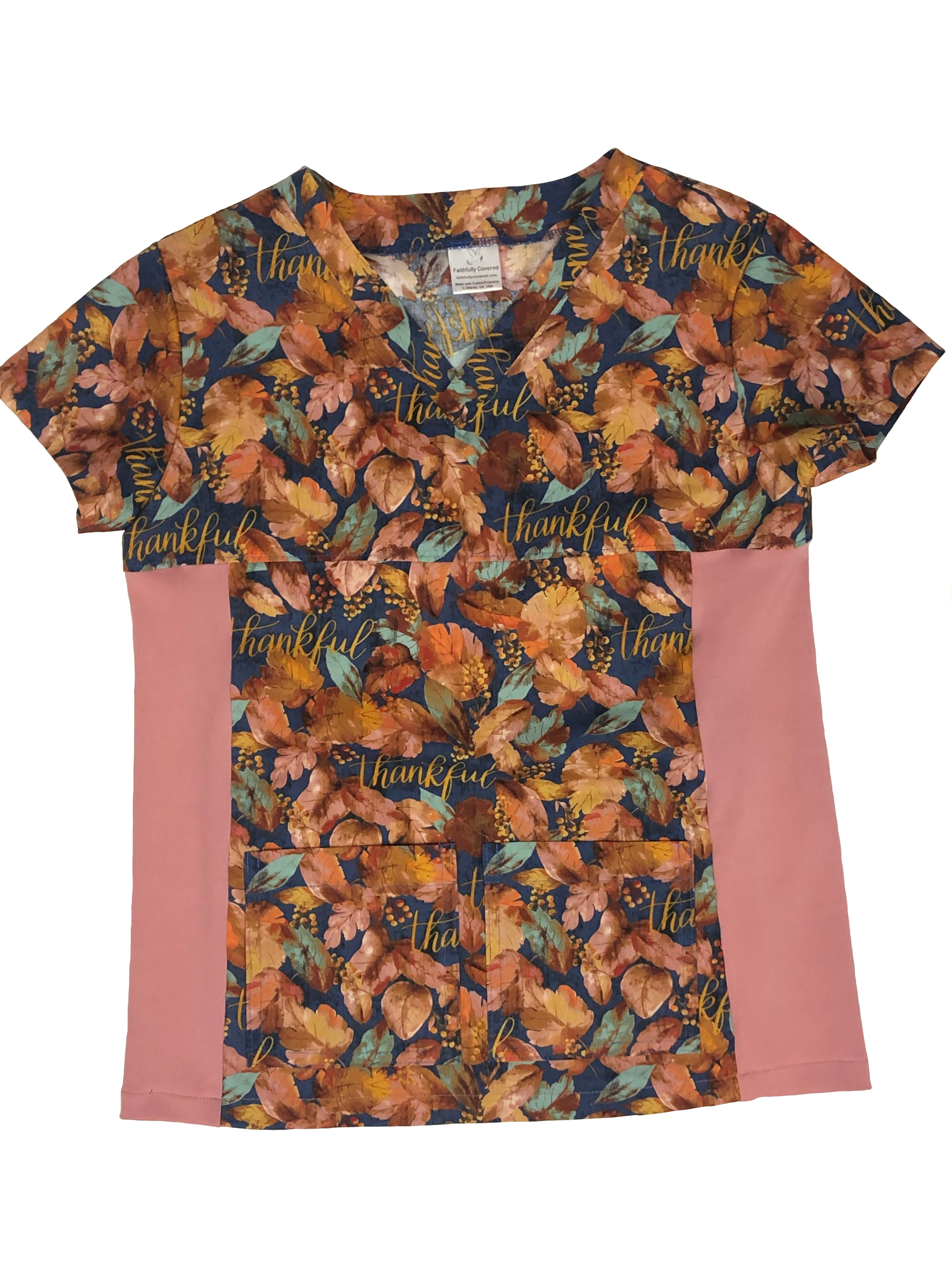 Christian Scrub Top with Inspirational Words - Give Thanks