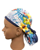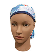 Ponytail scrub cap with a floral pattern imprinted. Perfect for those with longer hair. One size fits most. Has a tie at the end for a more secure fit.