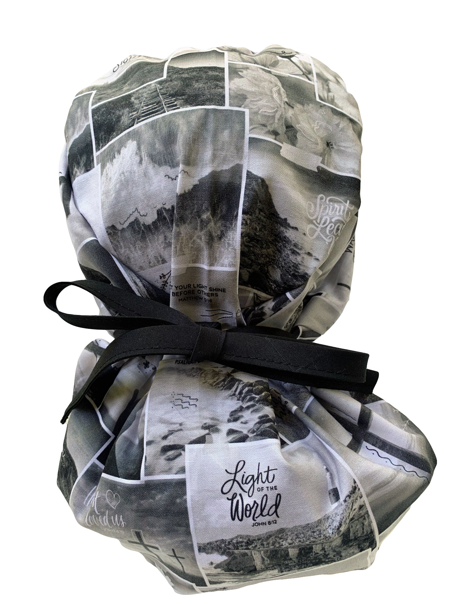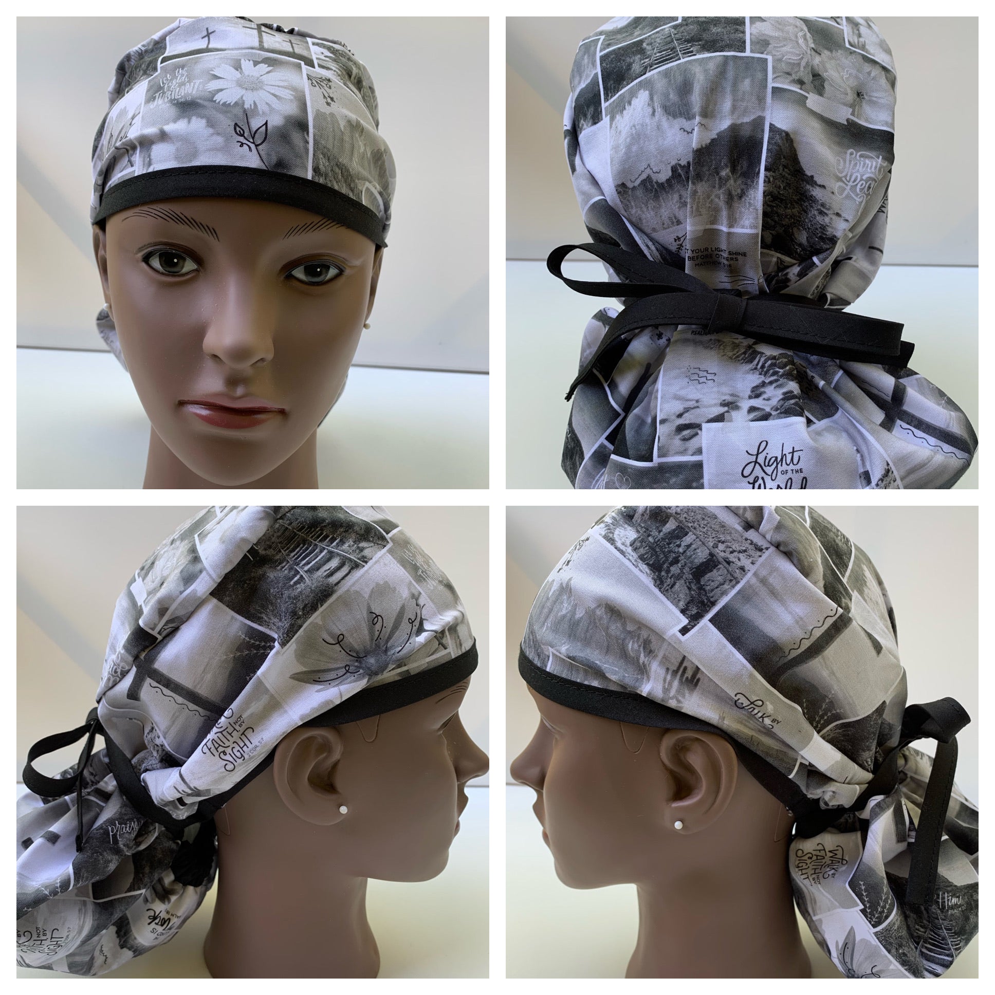 Proclaim your faith with this Christian ponytail scrub cap. This scrub cap is imprinted with various words of affirmation and inspiration. This scrub cap is designed for medical professionals with longer hair. The scrub cap has elastic in the back of the cap and extra-long tie straps to make for a more secure fit. The scrub cap is made of 100% cotton and is machine washable. It is recommended that you do not use bleach. These scrub caps are currently available in two design prints with more designs on the way.