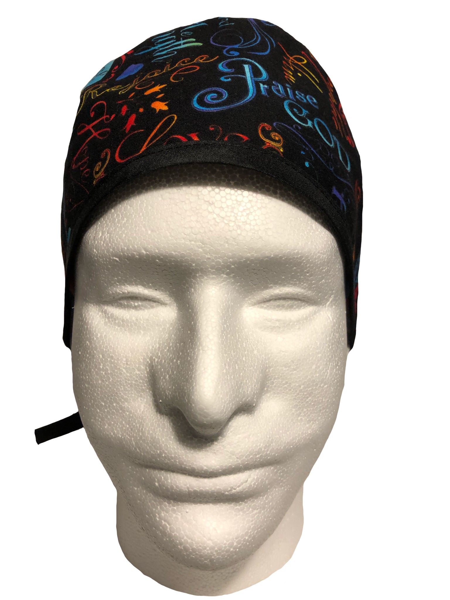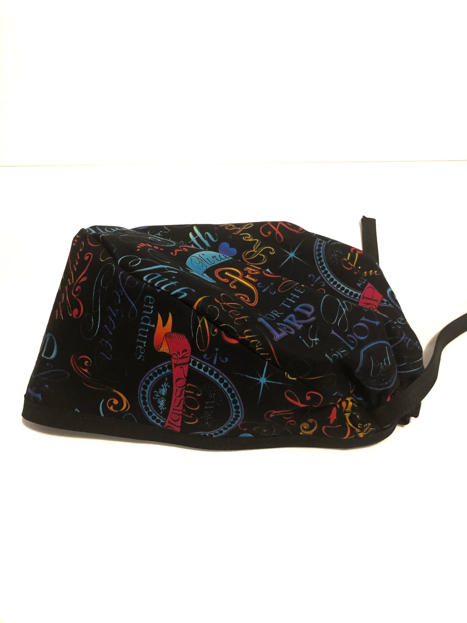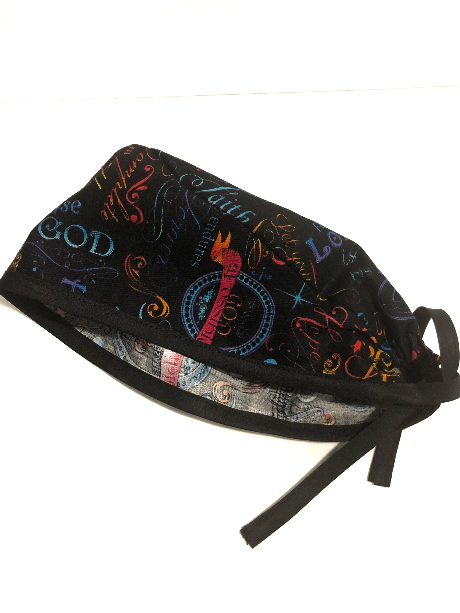Proclaim your faith with this Christian scrub cap. This scrub cap is imprinted with various words of affirmation and inspiration. The cap has an elastic in the back of the cap and a tie at the end for a more secure fit. The scrub cap is made of 100% cotton and is machine washable. It is recommended that you do not use bleach. These scrub caps are currently available in three design prints with more designs on the way.