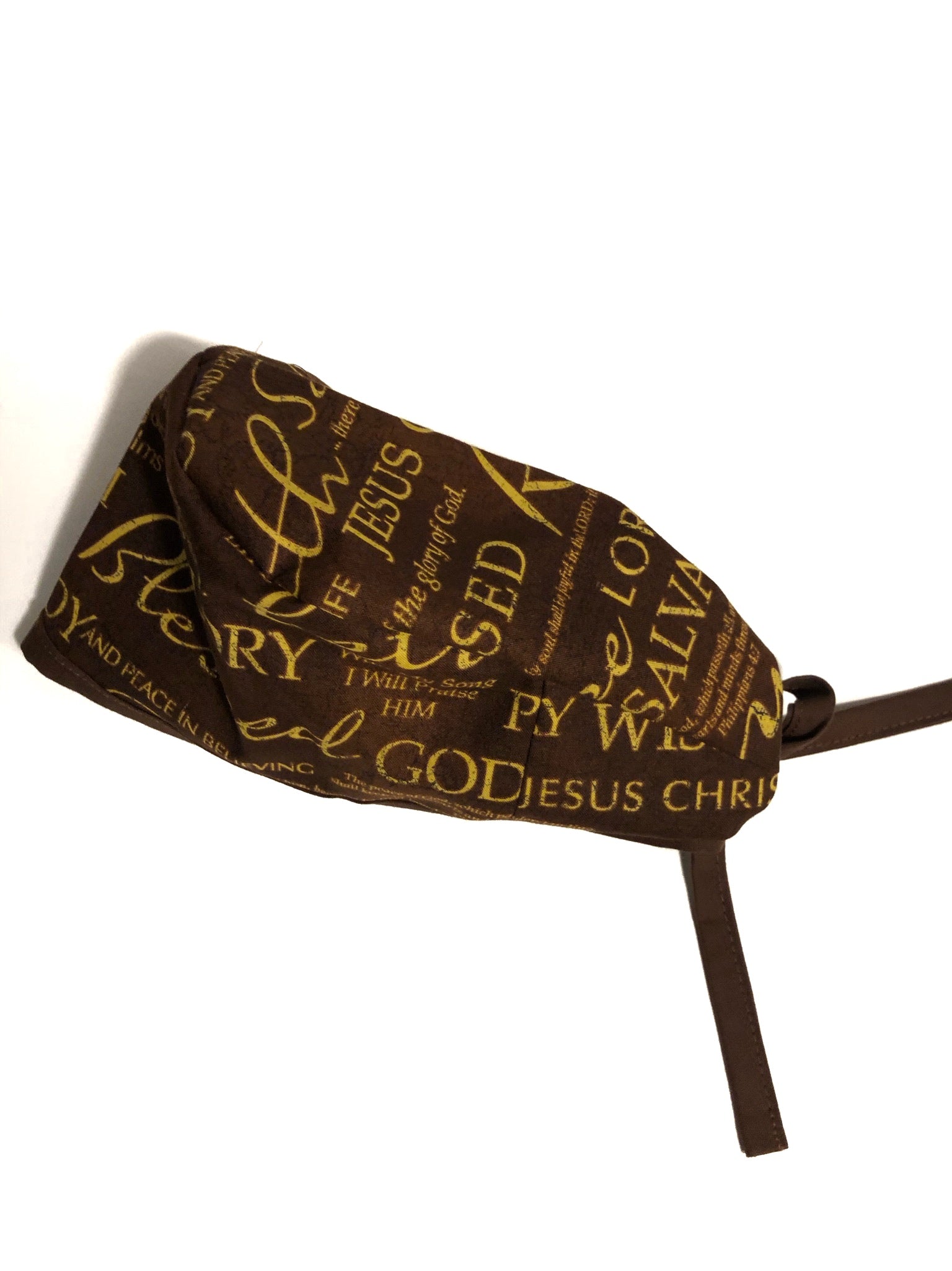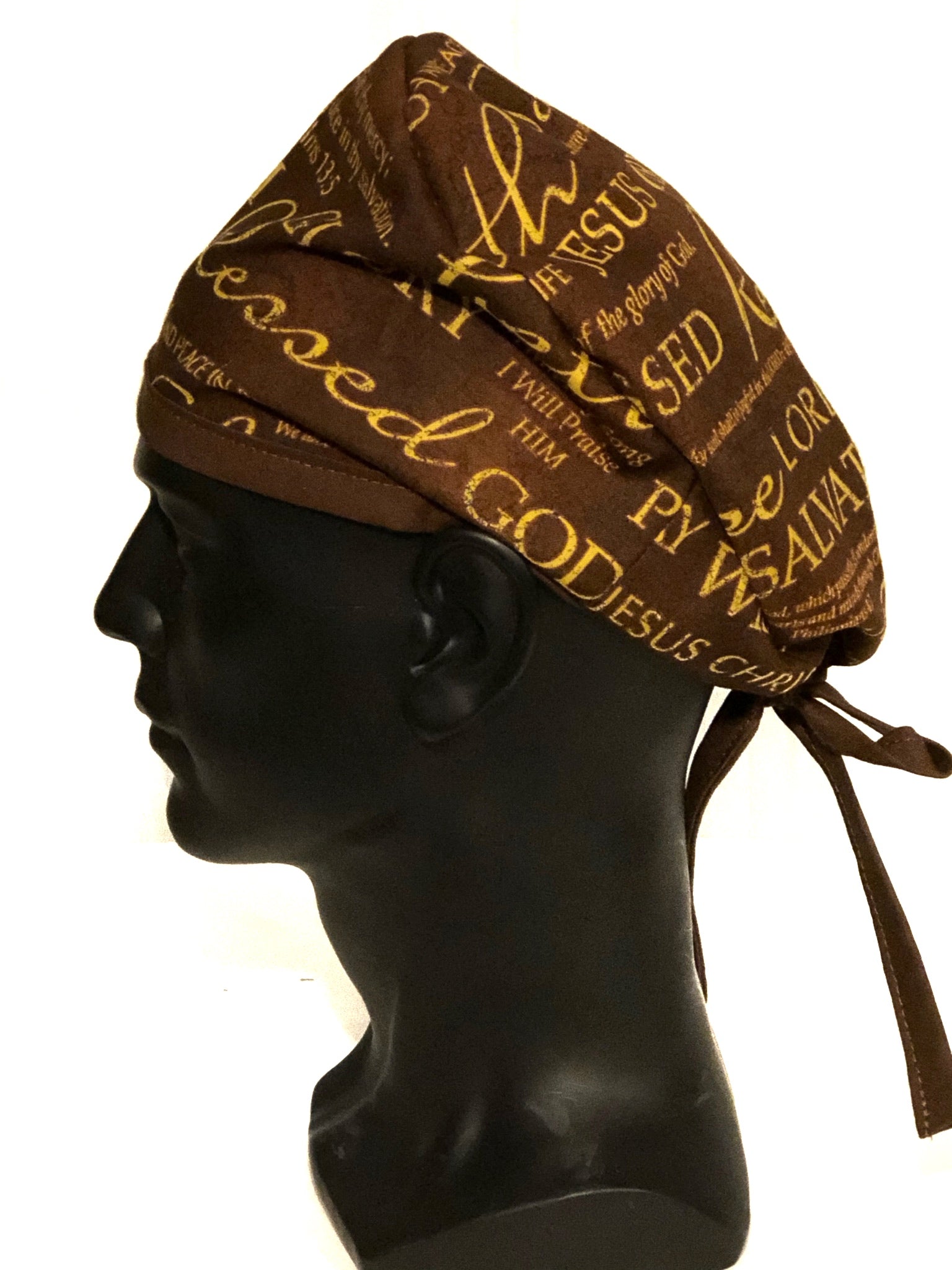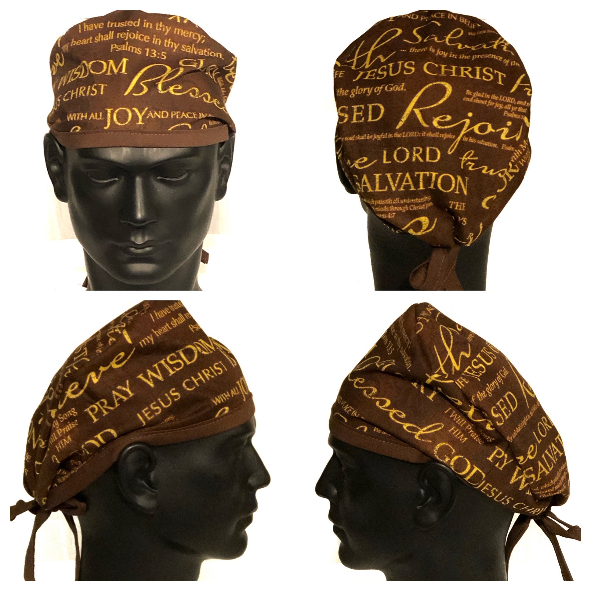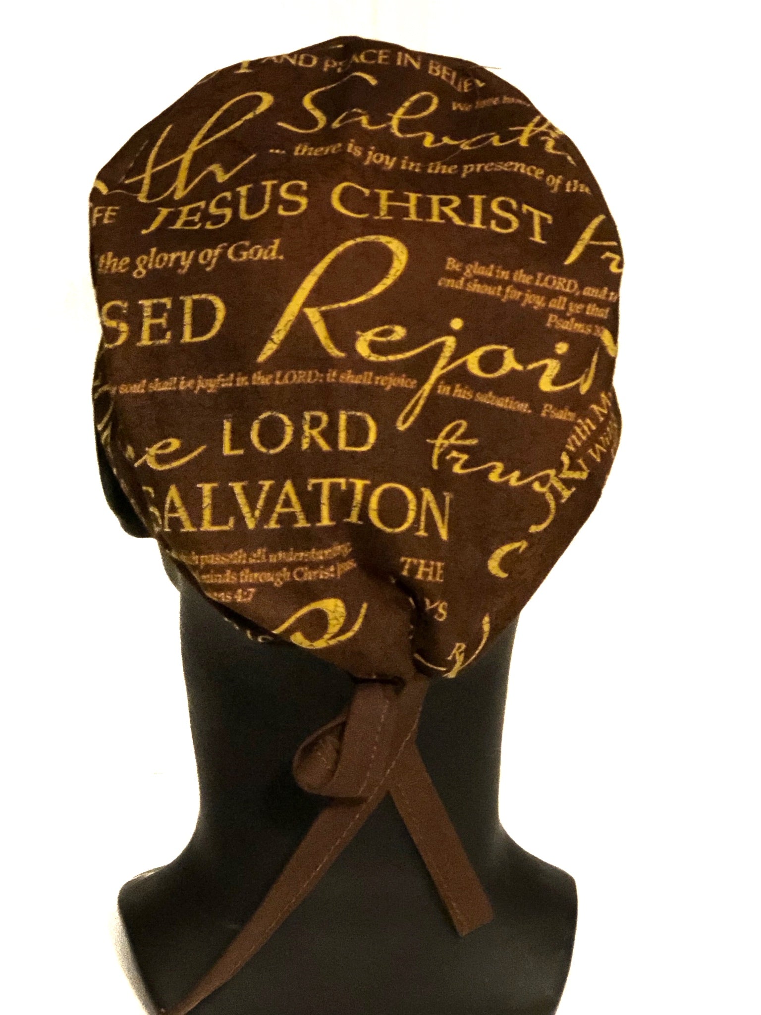 Proclaim your faith with this Christian scrub cap. This scrub cap is imprinted with various words of affirmation and inspiration. The cap has an elastic in the back of the cap and a tie at the end for a more secure fit. The scrub cap is made of 100% cotton and is machine washable. It is recommended that you do not use bleach. These scrub caps are currently available in three design prints with more designs on the way.