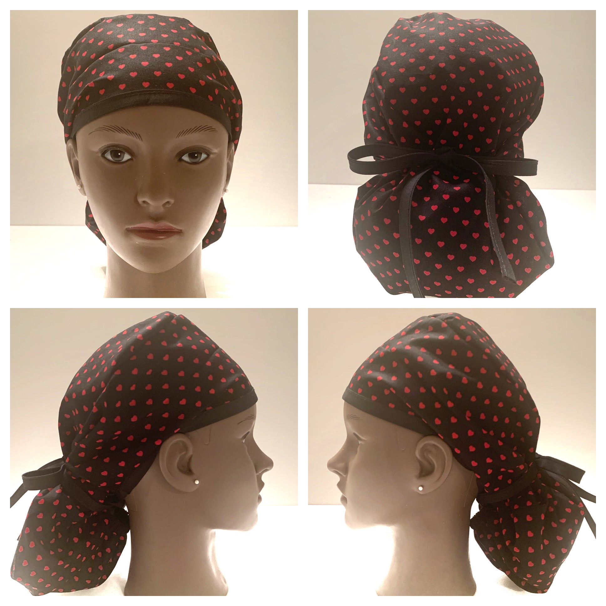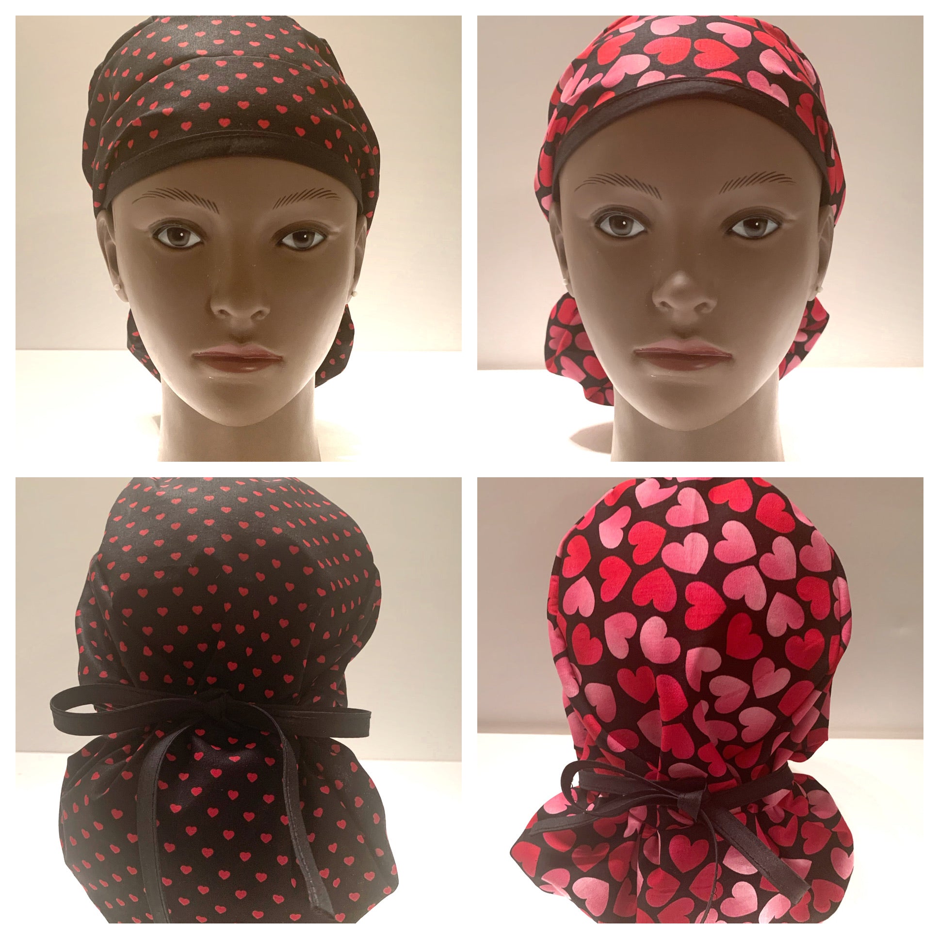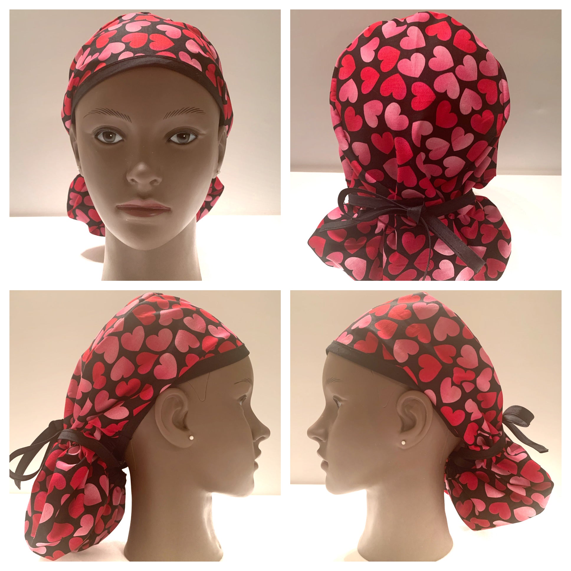 Ponytail scrub caps with Valentine’s Day patterns imprinted. Perfect for those with longer hair. One size fits most. Has a tie at the end for a more secure fit. 100% cotton. Machine washable.